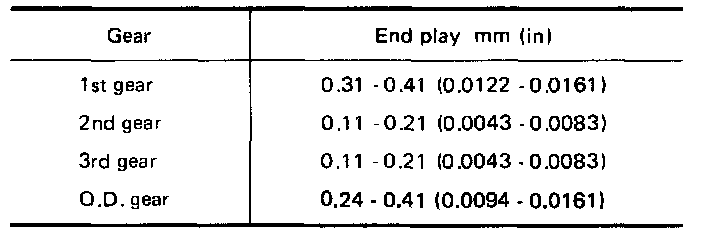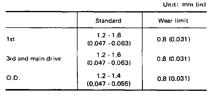 Clearance Between Baulk Ring And Gear - 1st, 3rd, Main Drive And O.D. Baulk Ring: