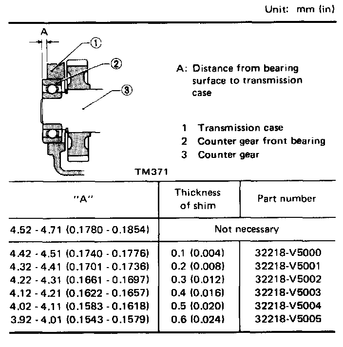 Available Shims - Counter Front Bearing: