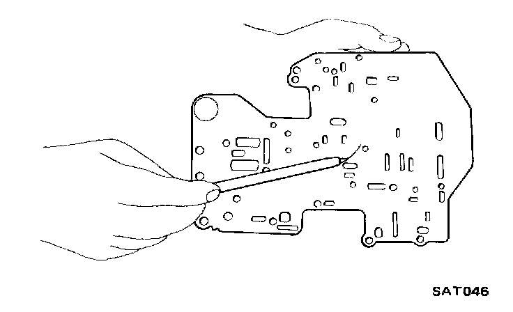 4. Check oil passages in upper and lower valve bodies for varnish deposits, scratches or other damage that would impair valve movement. Check threaded holes and related bolts and screws for stripped threads; replace as needed.