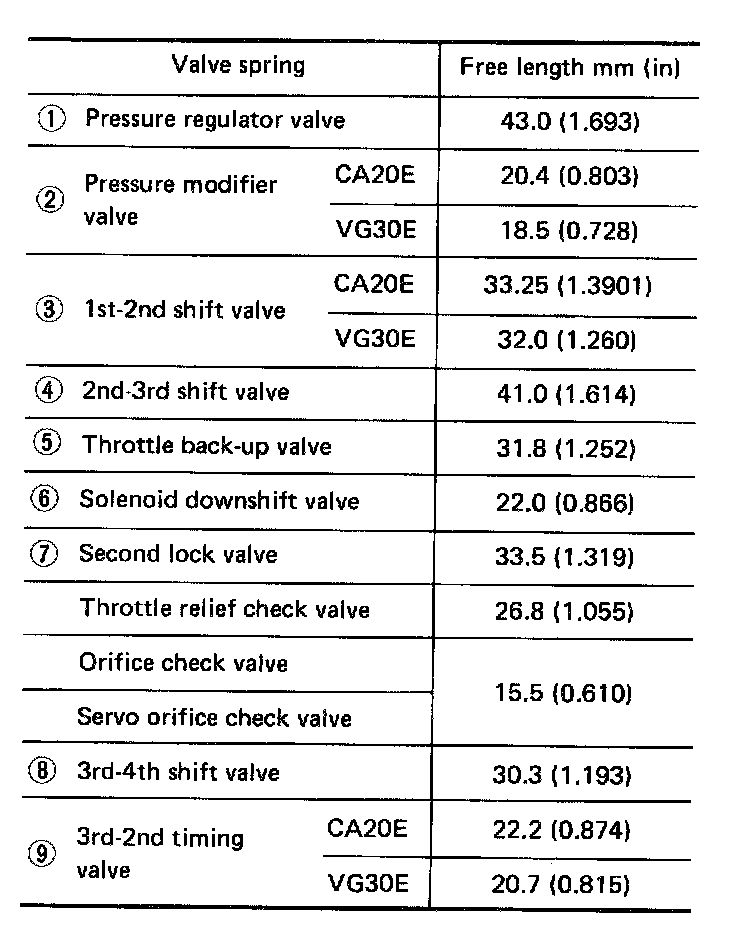Numbers of each valve spring listed in table below are the same as those in the figure at the top.