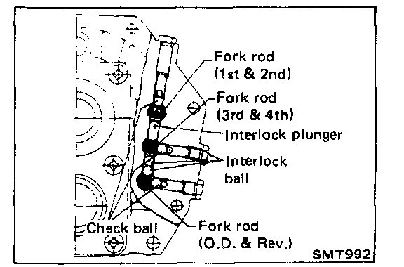 1. Install shift rods, interlock plunger, interlock balls and check balls.