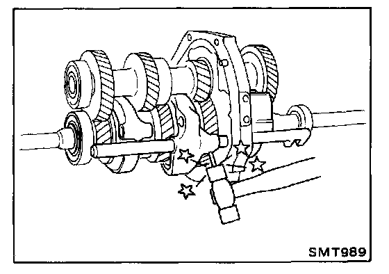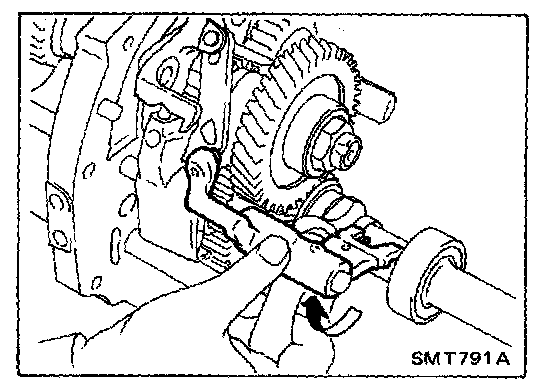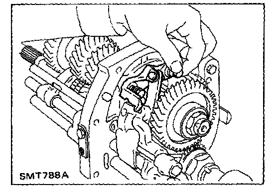 2. Install O.D.-rev. fork shaft by rotating O.D.-rev. bracket clockwise (mainshaft braking mechanism only).