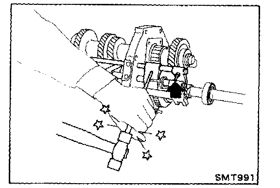 4. Install lever bracket securing bolt (mainshaft braking mechanism only).