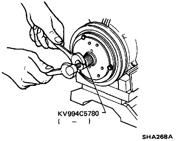 ^ When removing shaft nut, hold clutch hub with Tool KV99412302.