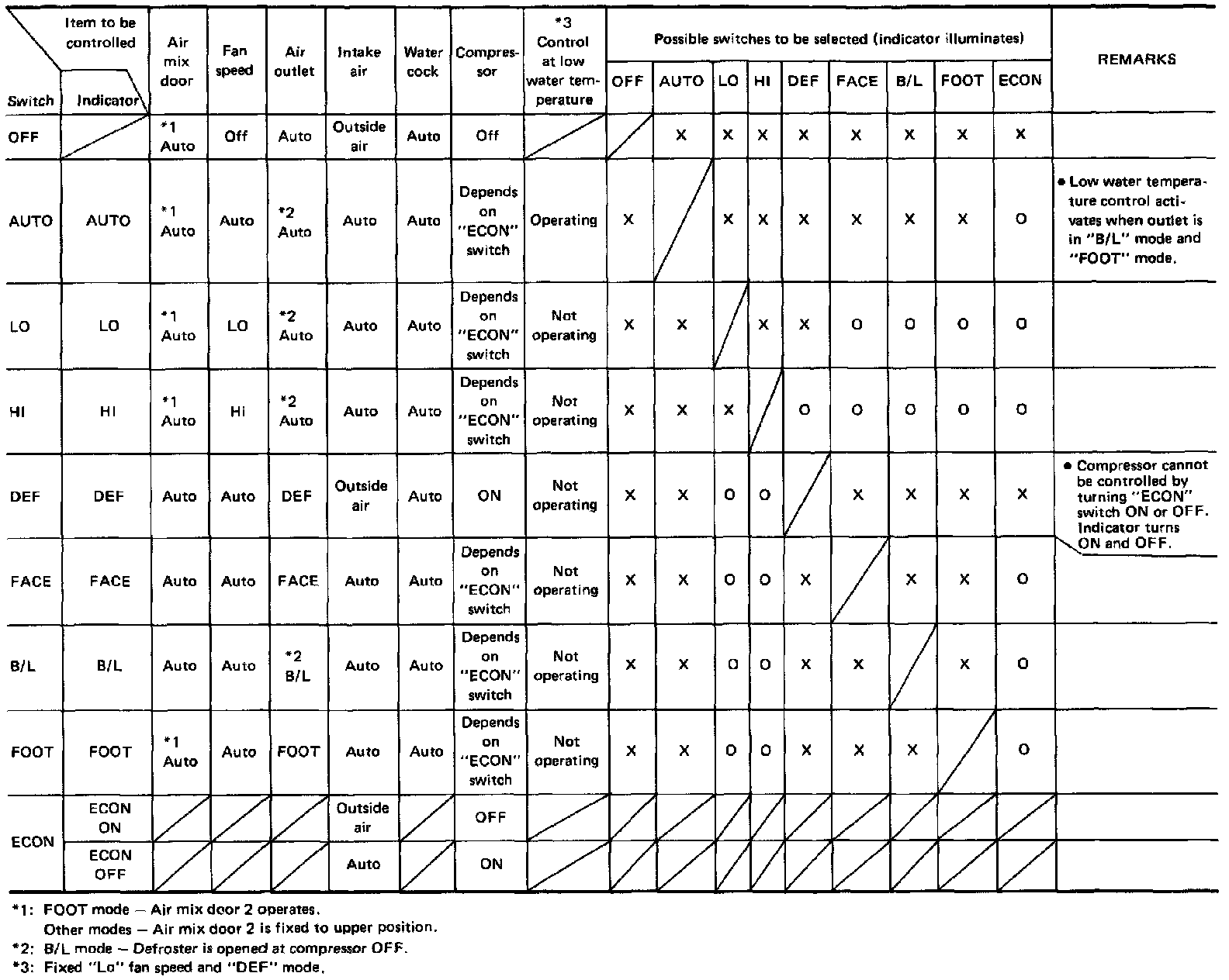 ^ There are push ON switches except for ECON switch. Push on switches cannot be canceled by pushing again.
