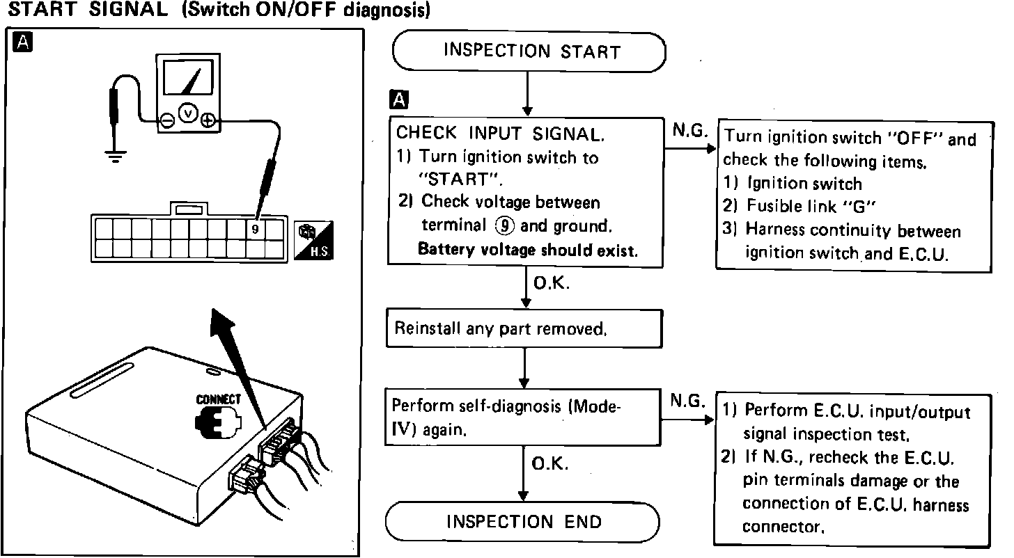 Fig. 287 Start signal switch ON/OFF diagnosis procedure.:
