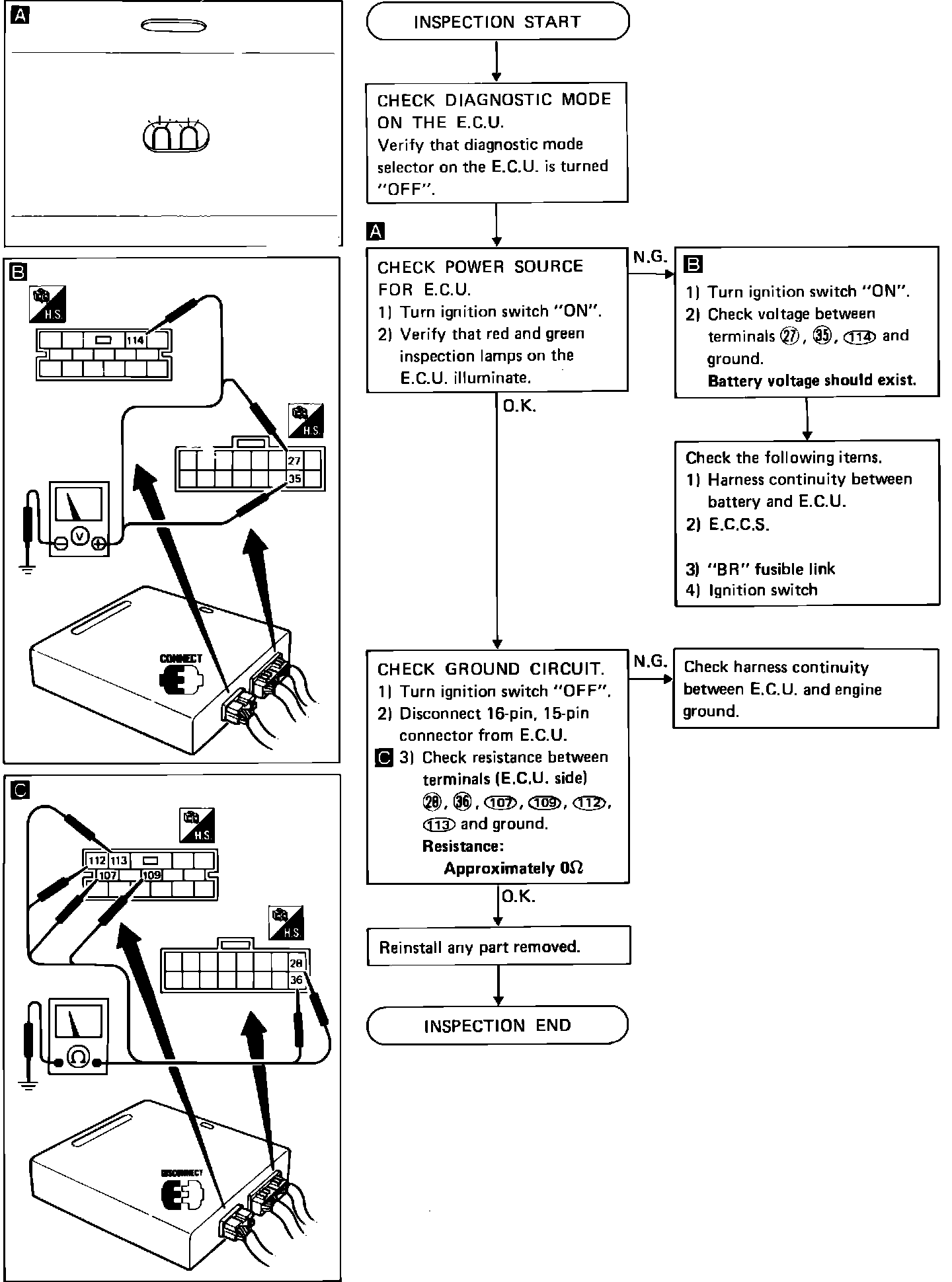 Fig. 312 ECU power source & ground circuit diagnosis.: