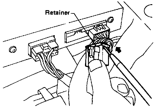 2. When performing E.C.U. input/output signal inspection, remove pin terminal retainer from 20 and 16 pin connector to make it easier to insert tester probe into connector.