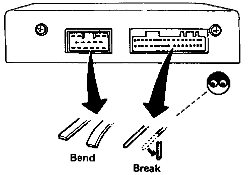 3. When connecting pin connectors into E.C.U. or disconnecting them from E.C.U., take care not to damage pin terminal of E.C.U. (Bend or break).