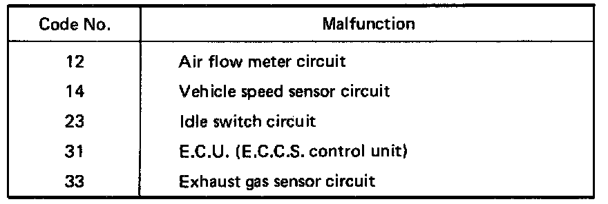 The self-diagnosis is useful to diagnose malfunctions in major sensors and actuators of the E.C.C.S. system. There are 5 modes in the self-diagnosis system.