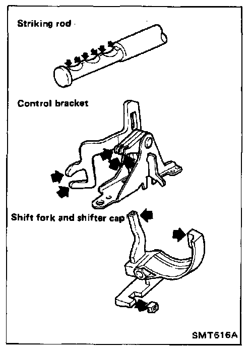 Check contact surface and sliding surface for wear, scratches, projections or other damage.