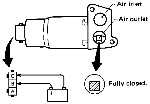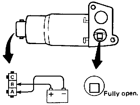 4. Apply battery voltage between (B) (+) and (A) (-) and confirm the opening of I.S.C. valve.