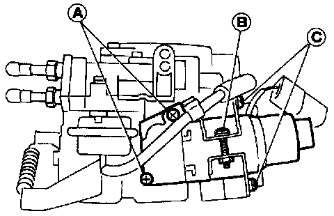 3. Apply battery voltage between (B) (+) and (C) (-) and confirm the opening of I.S.C. valve.