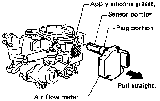 - When removing the air flow meter, extract it vertically, taking care not to bend or damage the plug portion.