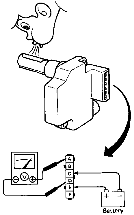 1. Apply battery voltage between terminals (E) (+) and (C) (-).