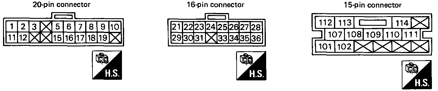 3. Disconnect 20- and 16-pin connector from E.C.U.