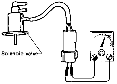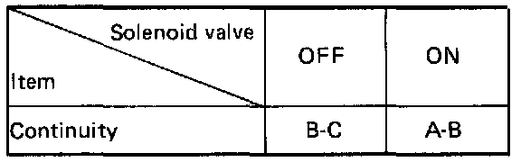 1. Check the solenoid valve for electric continuity, after disconnecting the harness connector.