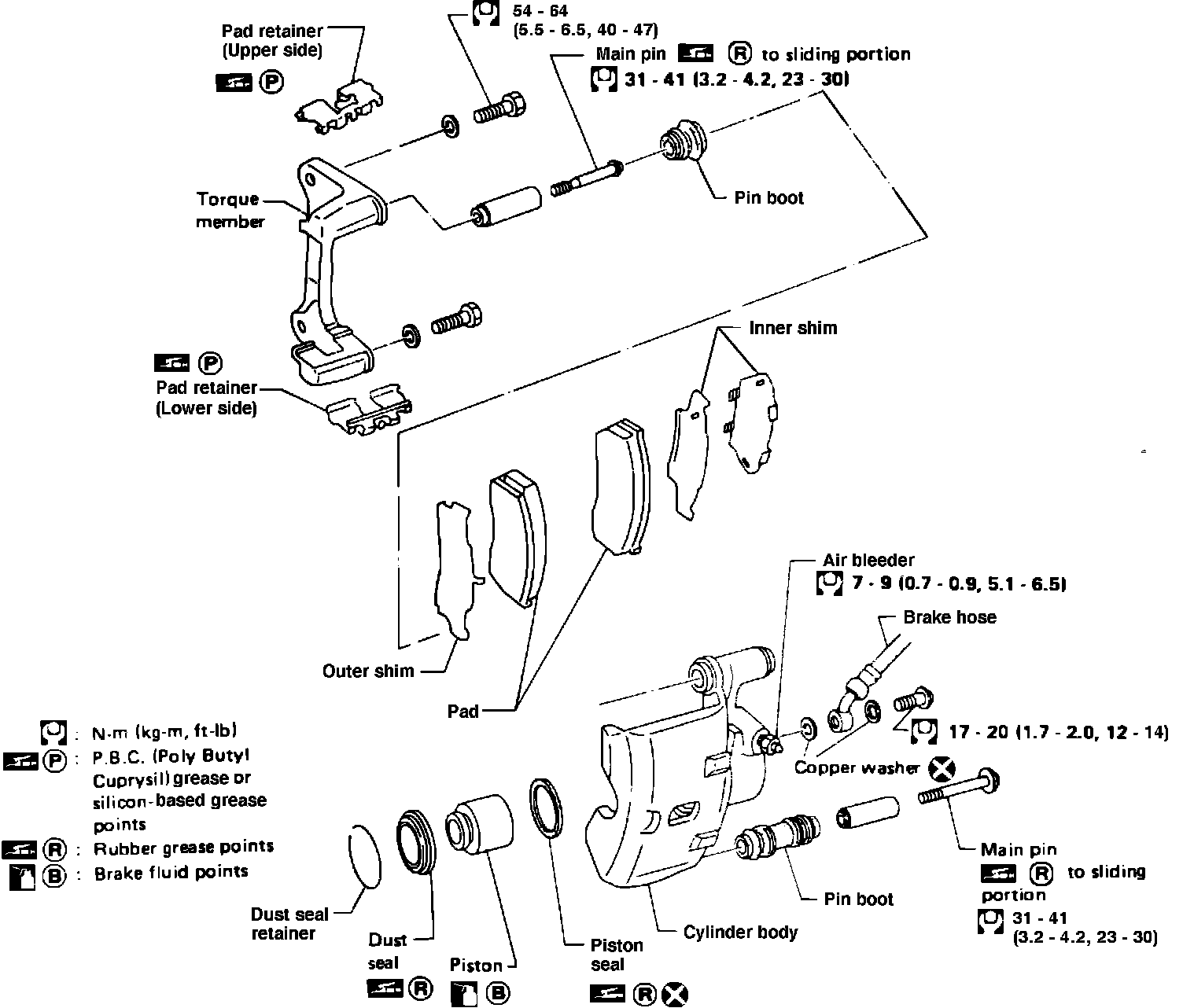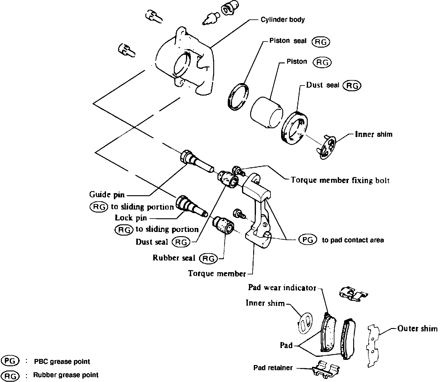 3. Remove piston seal, guide pin and lock pin from torque member.