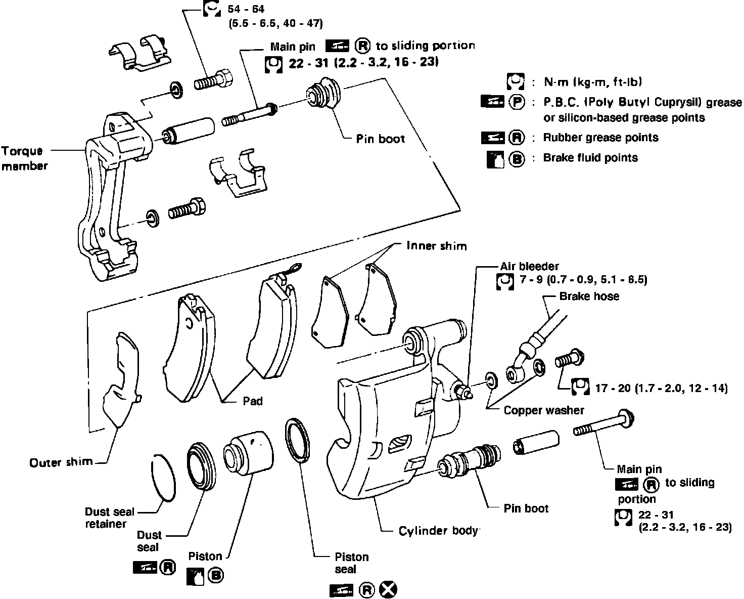 2. Remove brake hose, then press out piston with dust seal and retainer ring.