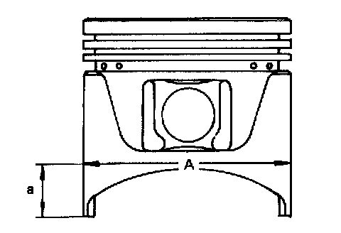 1. Measure piston skirt diameter "A" and cylinder bore diameter.