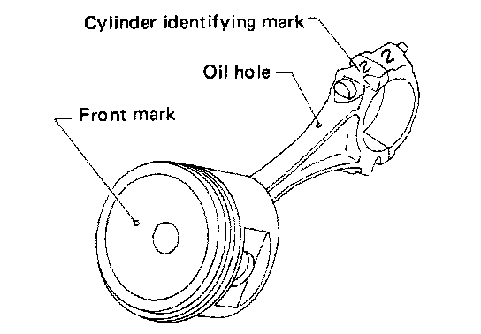b. Arrange so that the front mark on piston head faces to the front of engine.