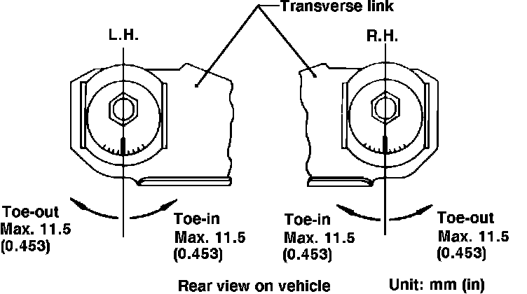 Rear toe-in is adjusted by rotating the cam bolts which secure the rear parallel link to the crossmember.