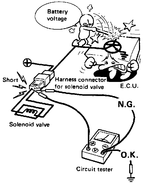 If the two tester probes accidentally make contact with each other during measurement, the circuit will be shorted, resulting in damage to the power transistor of the control unit.