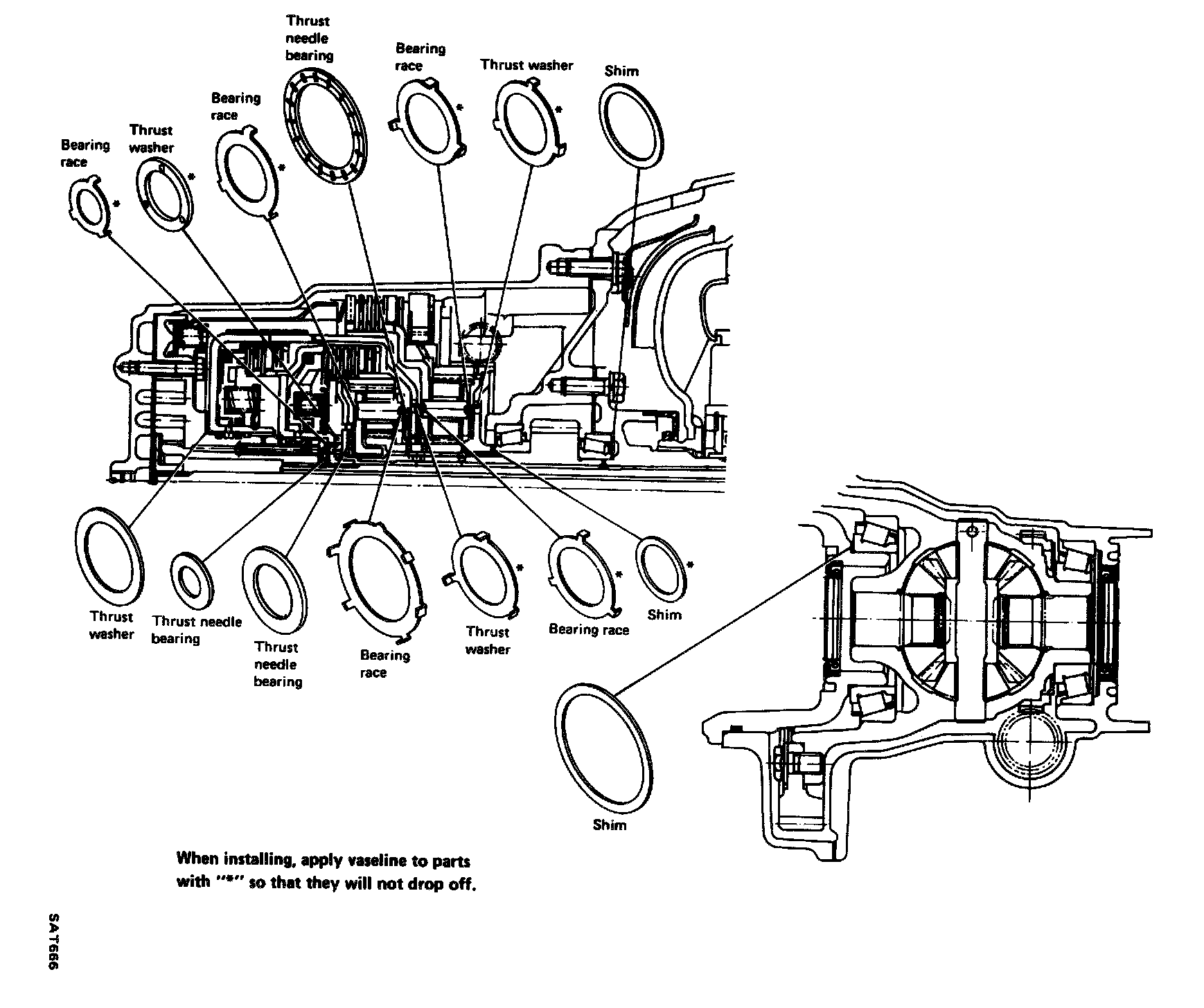 18. Apply vaseline to bearing race, then attach it to rear internal gear.