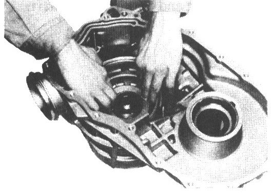 b. Press bearing outer race into converter housing.