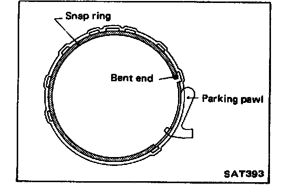 Ensure that its bent end is positioned so that it does not interfere with parking pawl.