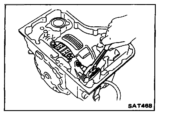 37. Before installing oil pan, check alignment and operation of manual lever and parking pawl engagement. Blow mechanism with air to clean.