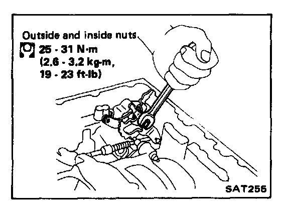 35. Install throttle lever, manual plate, selector range lever and parking rod assembly, then tighten manual shaft securing nuts.