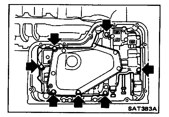 Before installing bolts marked in figure at left, ensure that bolt threads are clean and that locking sealer has been applied. Apply A.T.F. to threads of other bolts. Ensure that the transmission case has been cleaned with solvent.