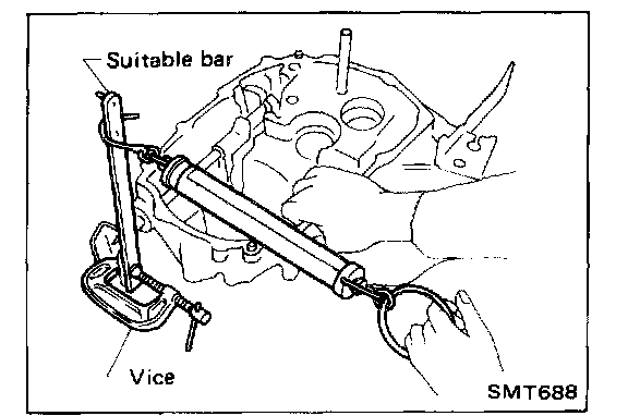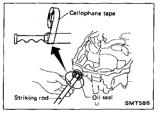 Note: When inserting striking rod into clutch housing, tape edges of striking rod to avoid damaging oil seal's lip if it hits against oil seal.