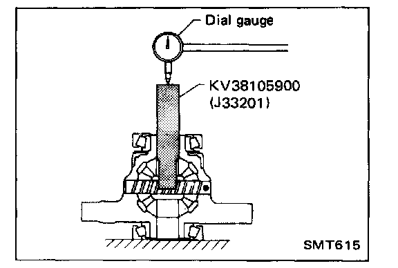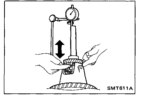 b. Move side gear up and down to measure dial indicator deflection. Always measure indicator deflection on both side gears.