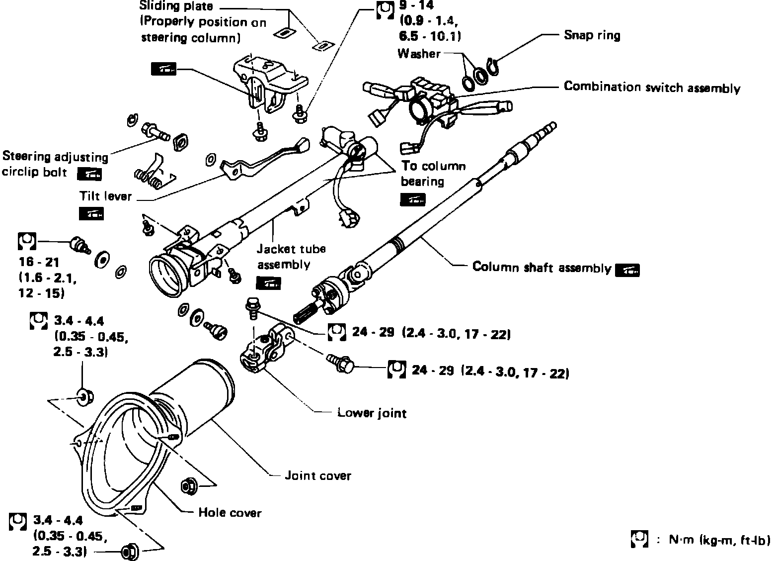 Fig. 16 Exploded view of steering column. 1987-88 Stanza: