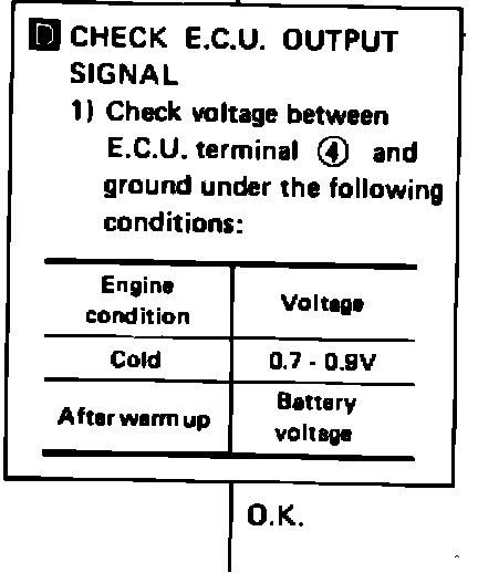 The E.G.R. Function Test in the Applied Service Manuals contains an error in the "Check ECU Output Signal". The correction is shown. Attached to this Bulletin at the time of distribution were amended pages for the following: