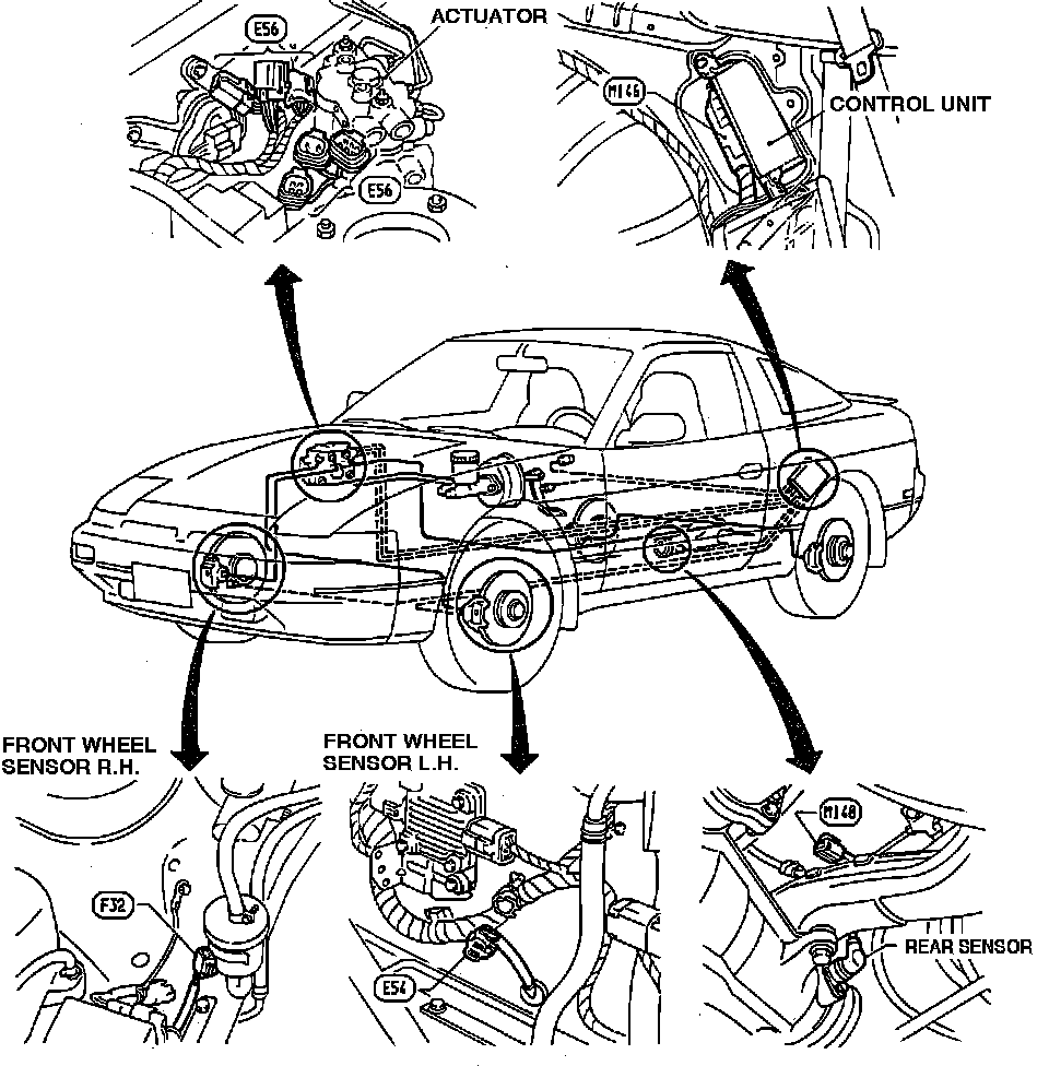 Fig. 78 ABS System Component & Harness Connector Locations (Part 1 Of 2). 240SX: