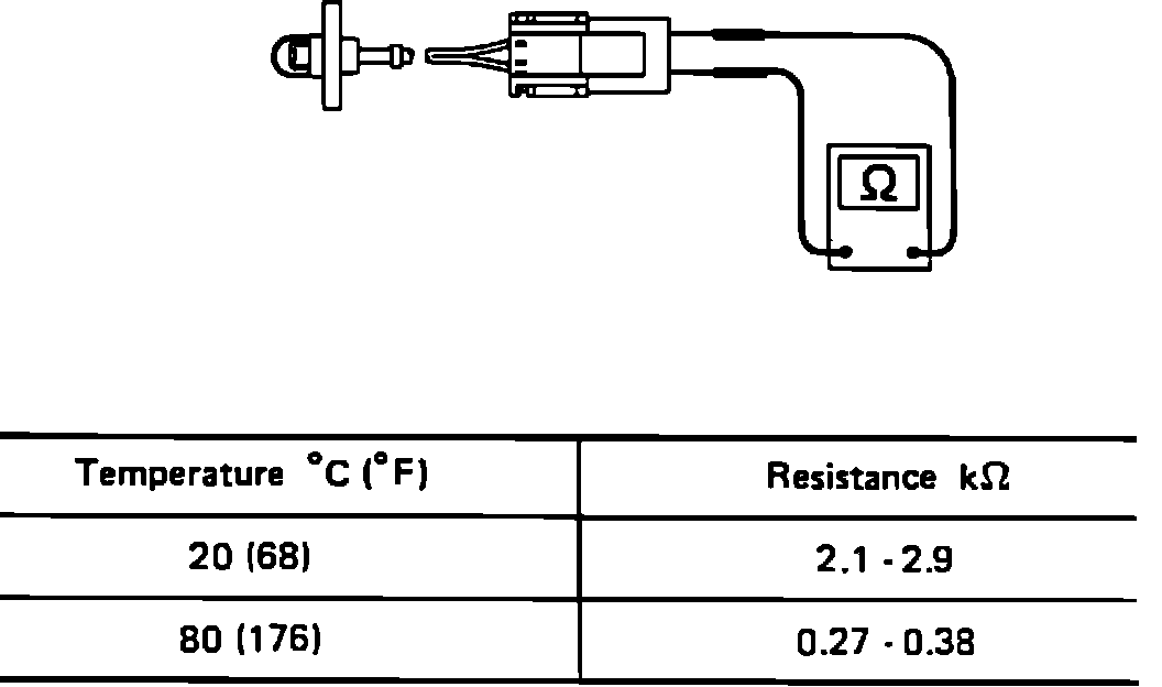 Using an ohm meter, check the resistance of the sensor at the specified temperatures.