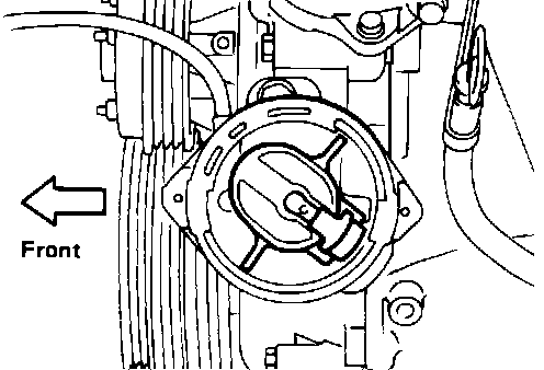 2. Install the distributor, making sure the rotor is aligned as shown when fully seated.