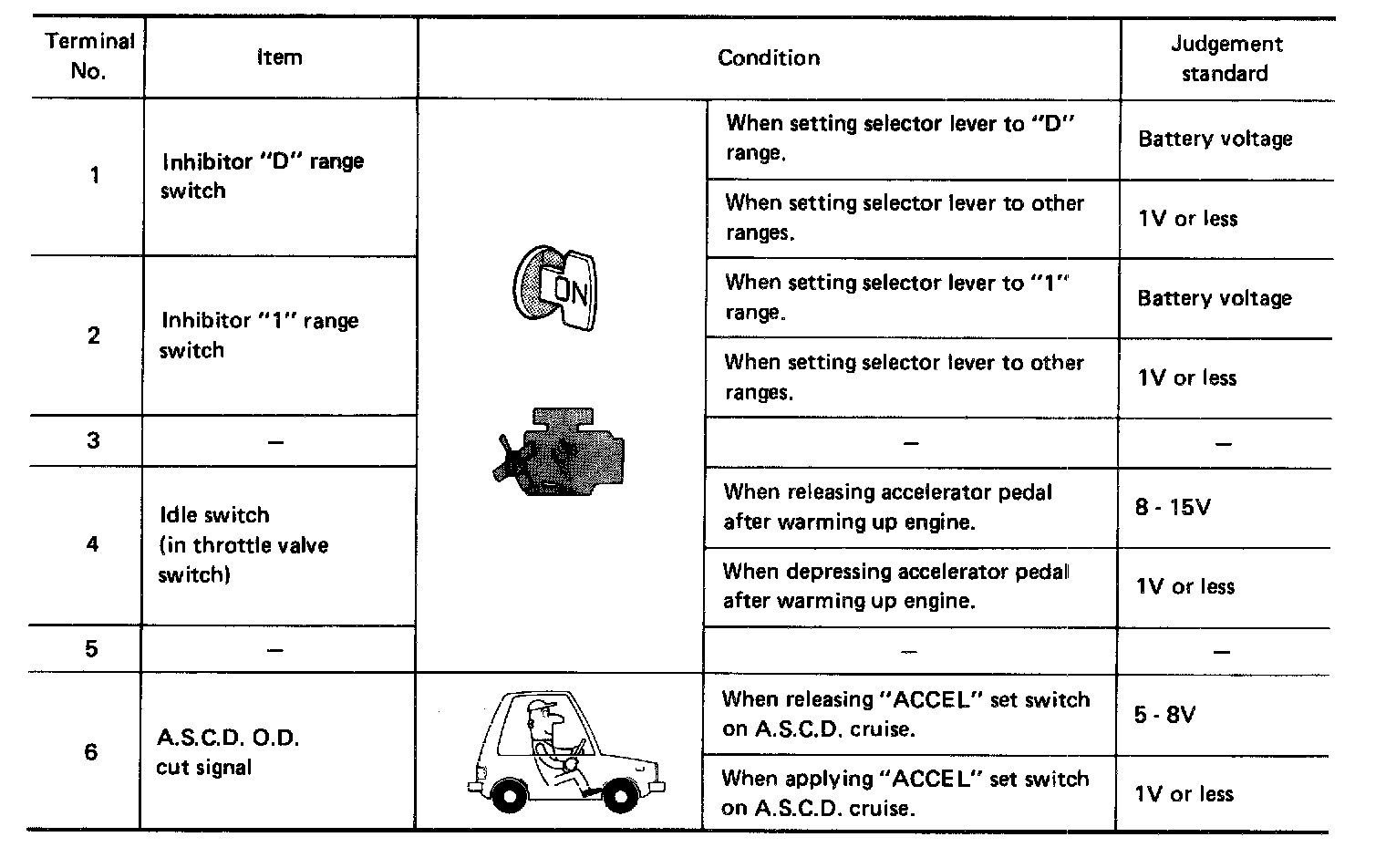 A/T Control Unit Inspection Table (Data Are Reference Values) - Terminal No: 1 - 6: