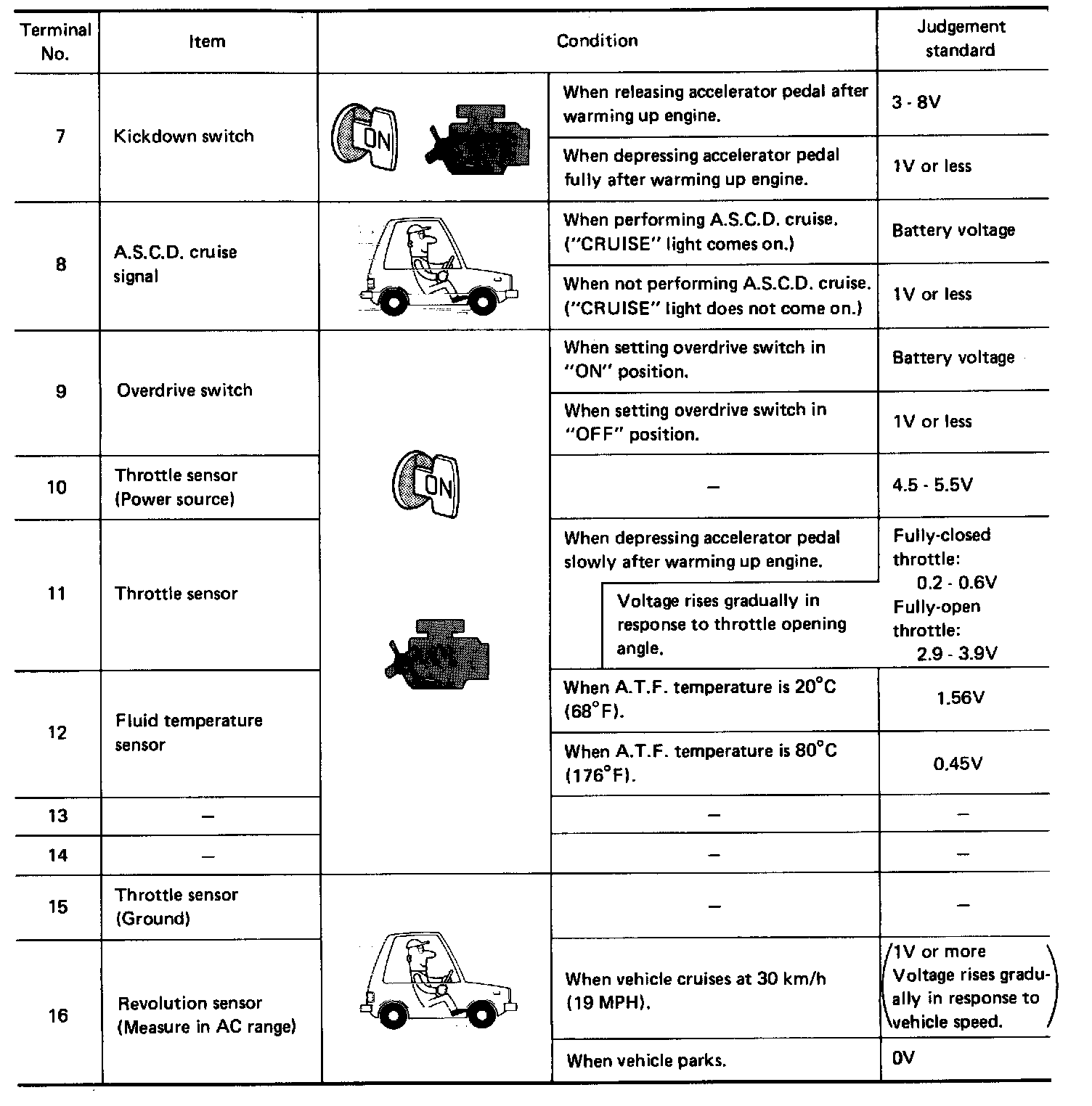 A/T Control Unit Inspection Table (Data Are Reference Values) - Terminal No: 7 - 16: