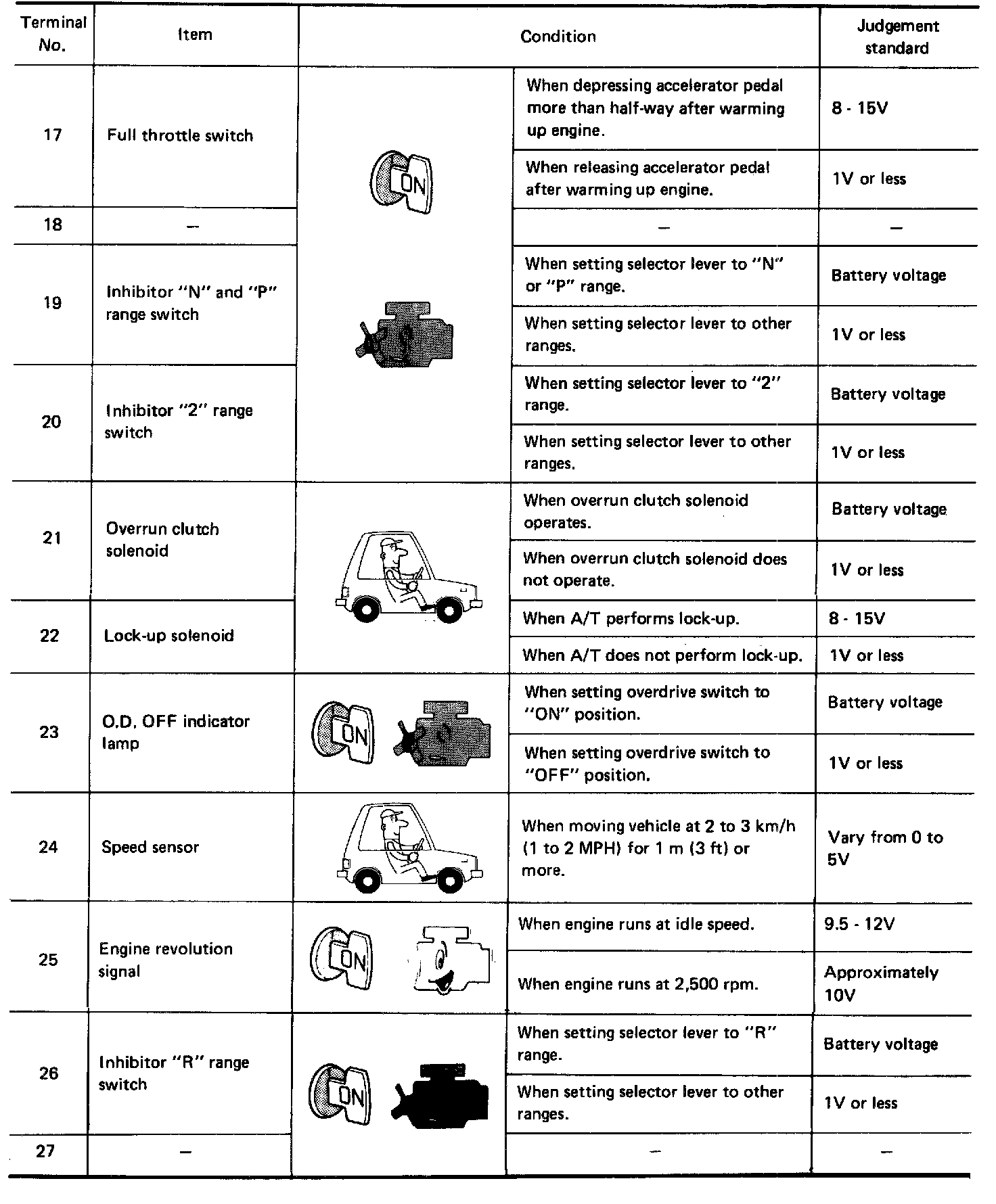 A/T Control Unit Inspection Table (Data Are Reference Values) - Terminal No: 17 - 27: