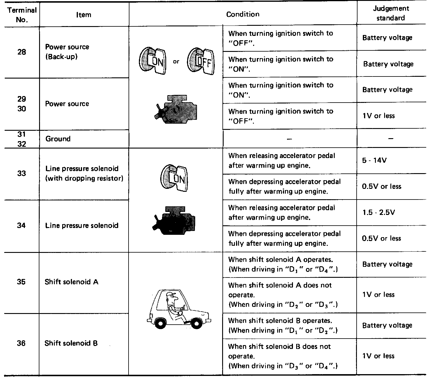 A/T Control Unit Inspection Table (Data Are Reference Values) - Terminal No: 28 - 36: