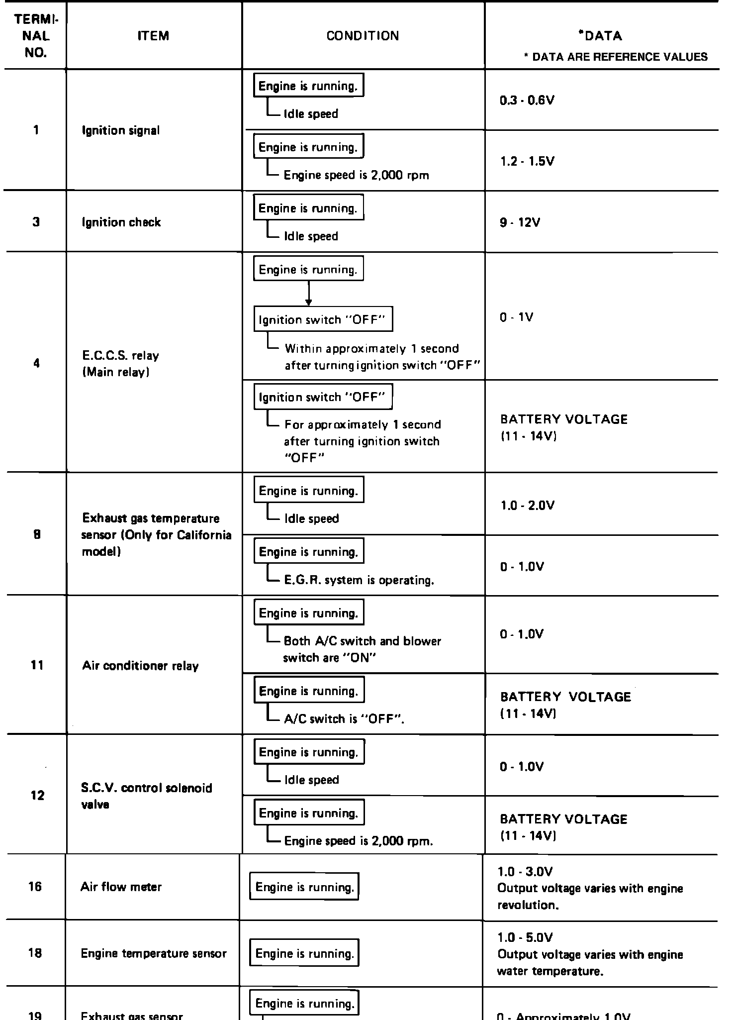 ECU PIN VOLTAGES