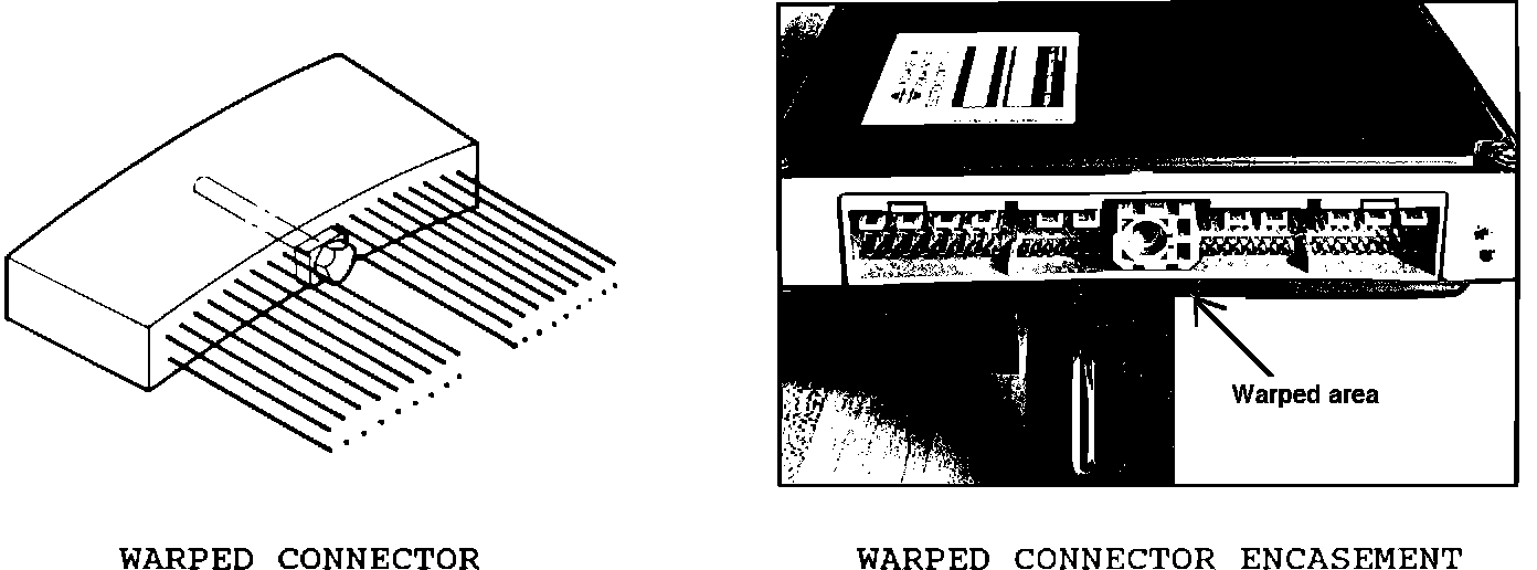 Some of the Applied Models listed above may fail to start if the ECU connector is not fully seated in the ECU. The connector may be misaligned and cocked to one side with the center bolt torqued down. The plastic encasement where the connector plugs in, or the connector itself, may be slightly warped causing a misalignment during connector installation. (See illustrations.)