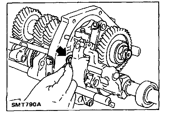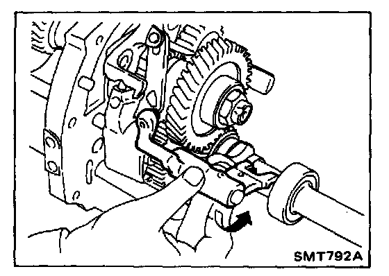 7. Draw out O.D. and reverse fork shaft by rotating O.D. and reverse bracket counterclockwise.