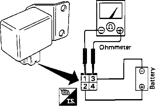 2. Disconnect battery. If timer is good, there should be a time lag of approximately 0.2 seconds with no continuity.
