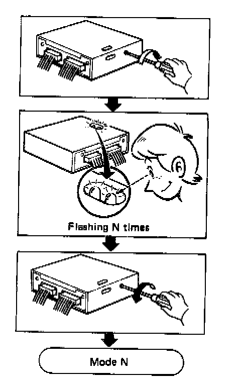 NOTE: When the ignition switch is turned off during diagnosis, in each mode, and then turned back on again after the power to the E.C.U. has dropped off completely, the diagnosis will automatically return to Mode I.