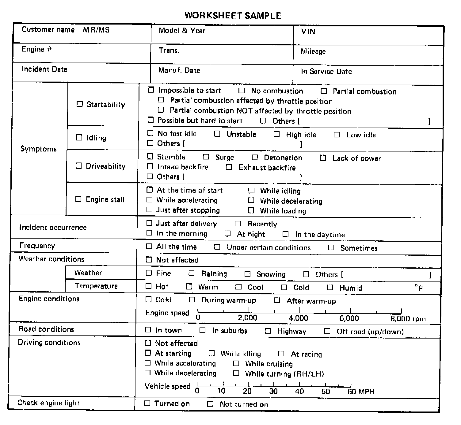 Make good use of a diagnostic worksheet such as the one shown below in order to utilize all the complaints for troubleshooting.